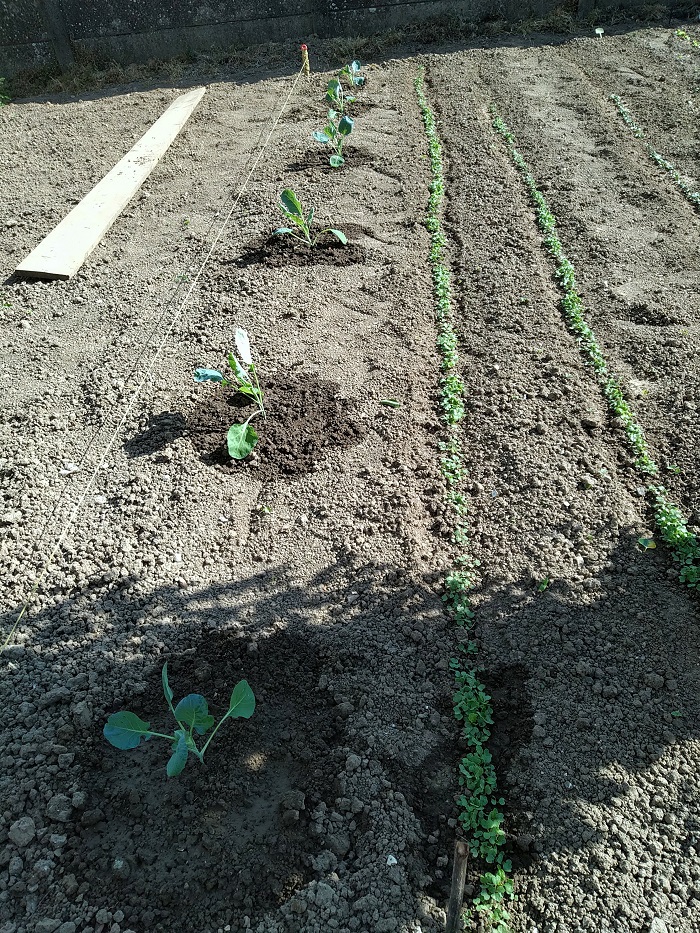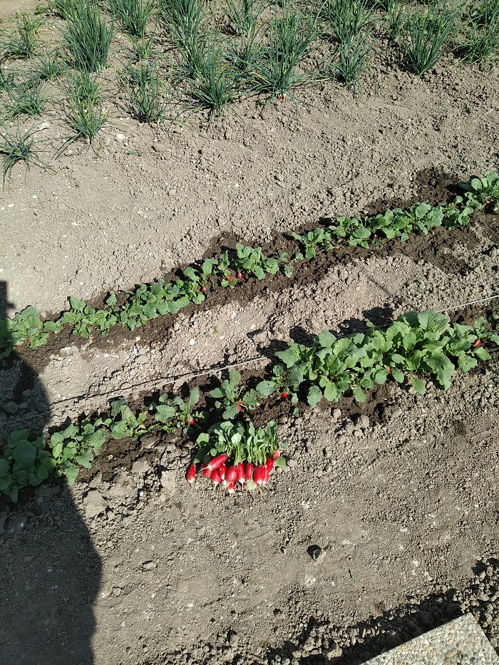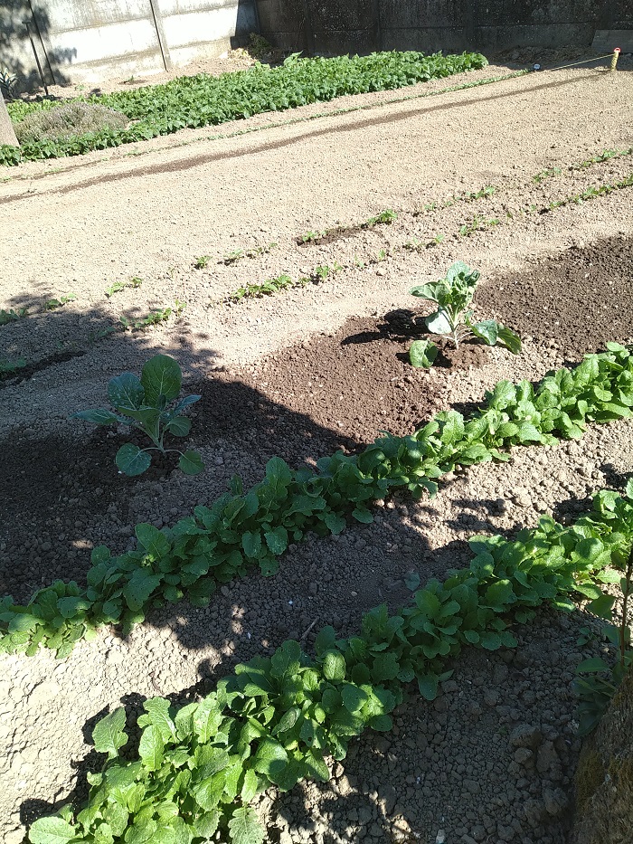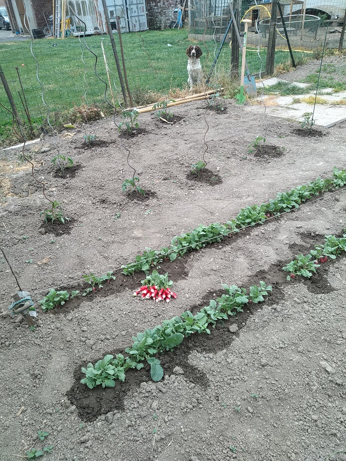 Au grand potager, un repiquage de six choux se Bruxelles et encore des radis ...surpris par leurs grosseurs