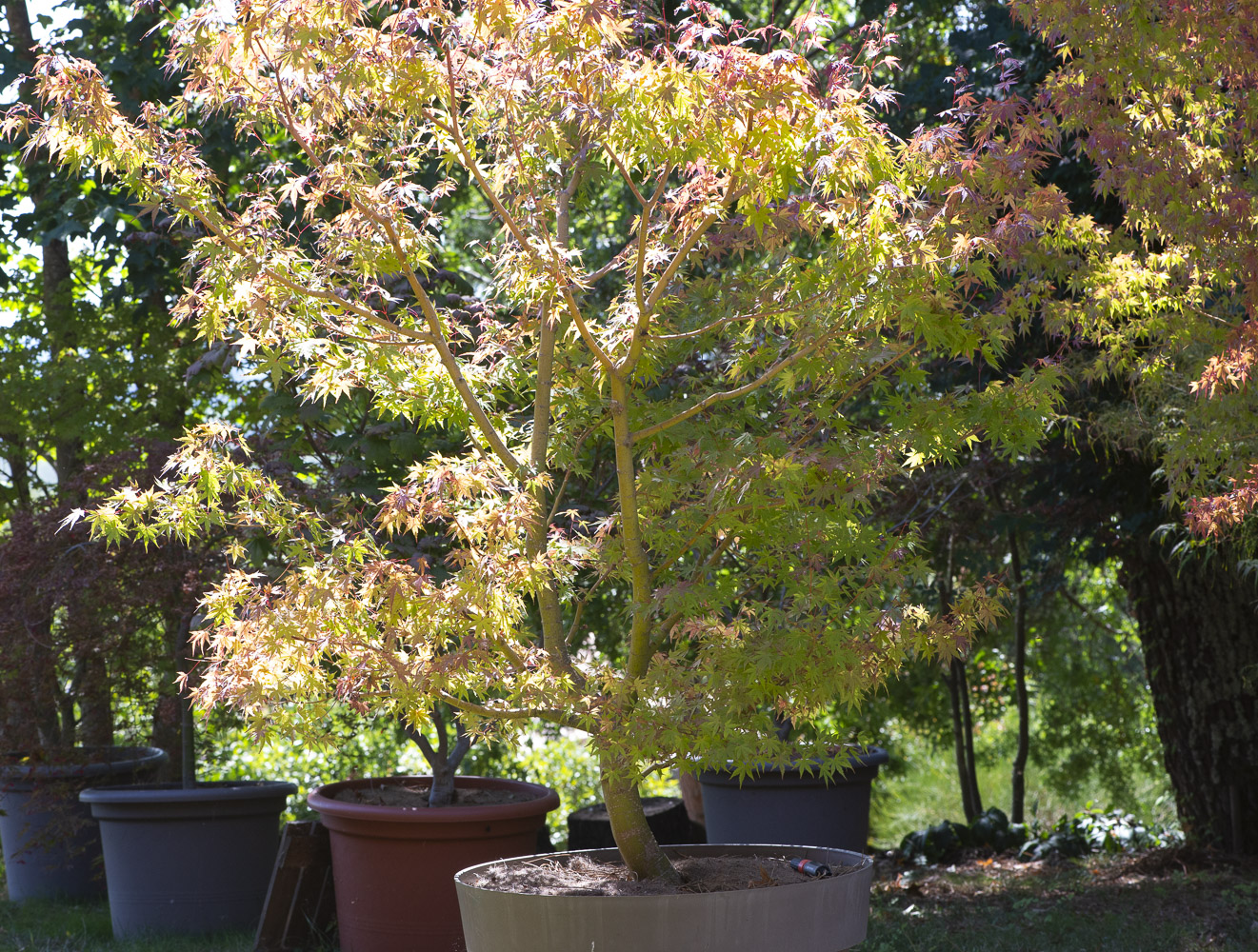 Un palmatum de cette force, planté en pleine terre, supporte le soleil du matin au soir.