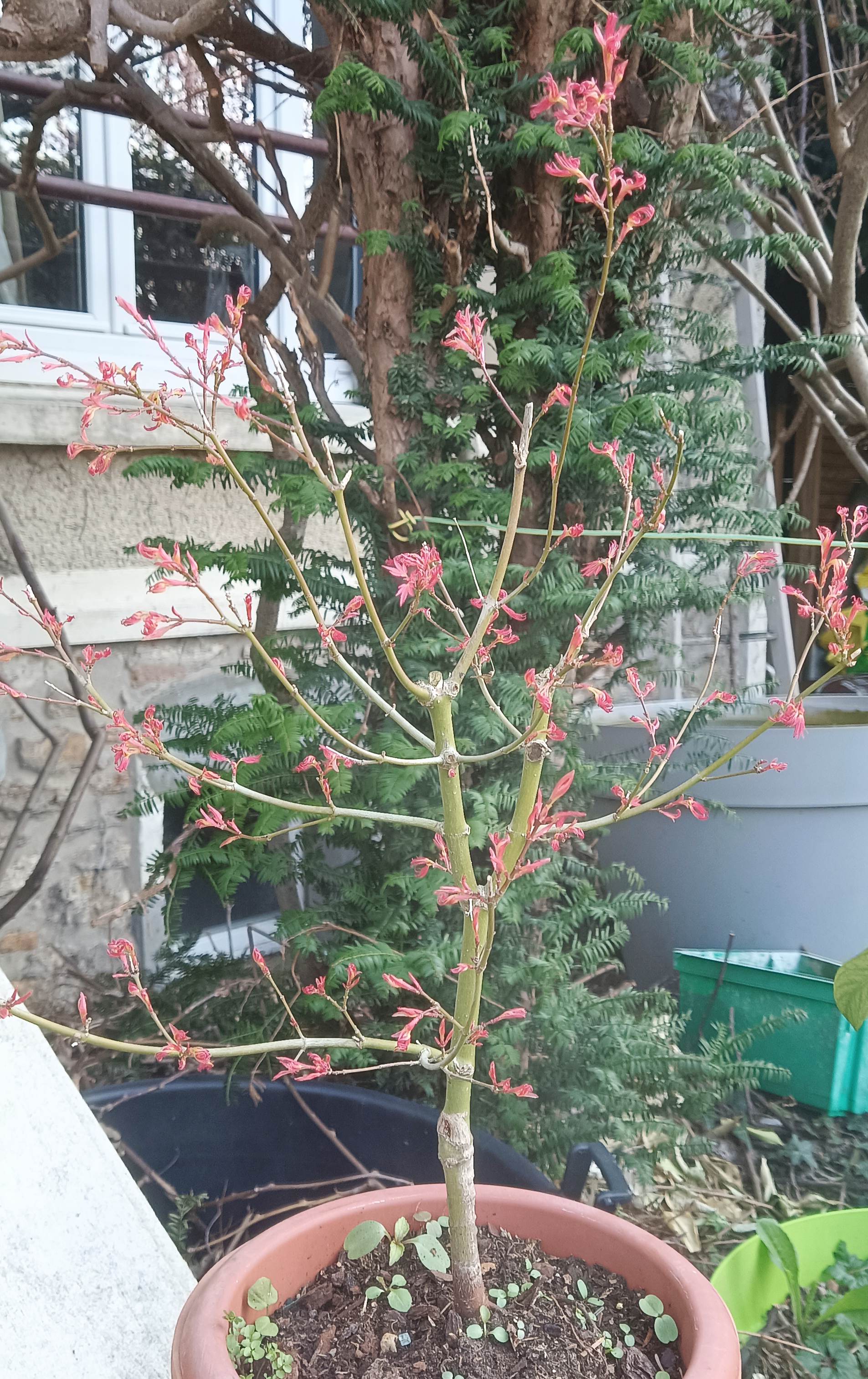 bonjour à tous, Ici, avec quelques heures de soleil par jour, quand il y en a, après Katsura à présent bien en feuilles, c'est au tour du Going green de faire ses feuilles, suivi par le Phoenix.