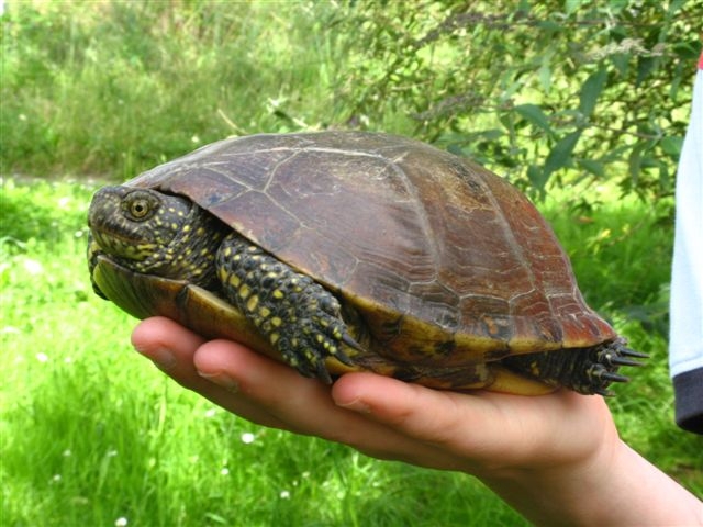 Moi j'ai bien trouvé une tortue d'eau mais une très intéressante : Une tortue Cistude.