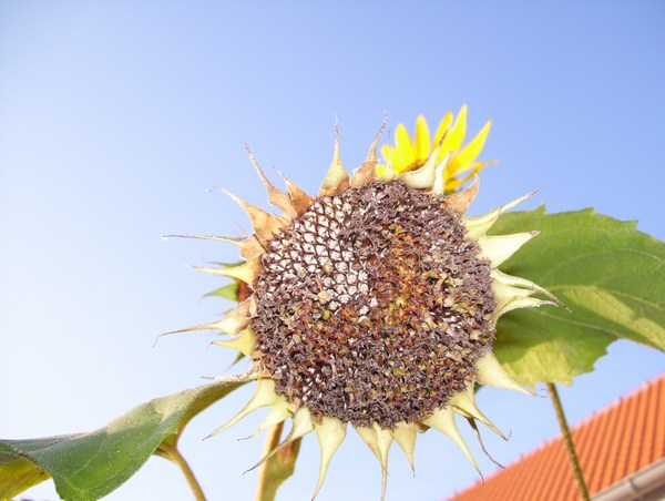 sur la partie centrale, la partie superficielle commence à se décrocher et derrière il reste une autre partie plus grosse (sur la photo à gauche partie haute, couleur blanchatre), est ce ça les graines , faut il encore attendre pour les récolter?
