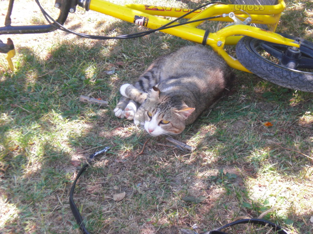 ENDROITS PREFERES POUR DORMIR: sous la table de jardin, dans l'herbe