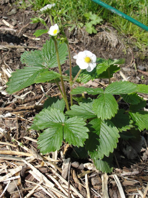Le premier fraisier en fleurs