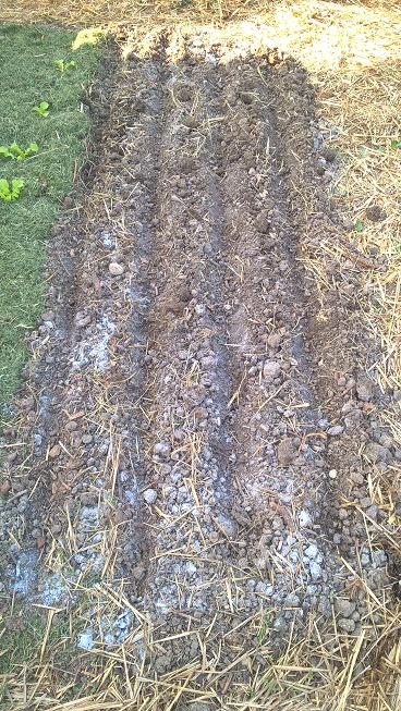 L'emplacement une fois libéré,j'y ai épandu un peu de cendre de bois et y ai semé des carottes