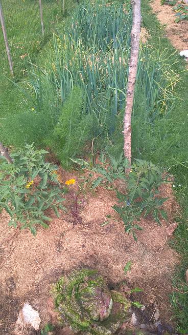 Je disposai d'une fine bande de terre libre,j'y ait simplement fait 5 petit trous pour y déposer les 5 pieds de fenouil,puis j'ai paillé et arrosé un peu sur la fin de culture.