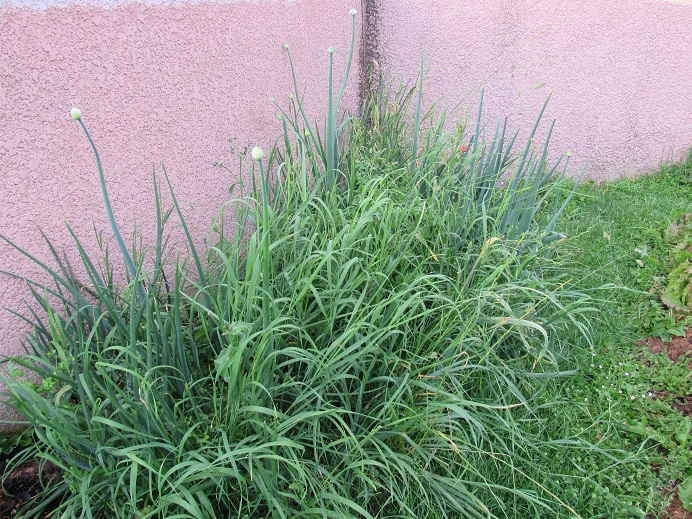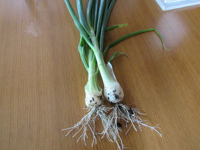 Pour accompagner la salades,nous avons récolté nos premiers oignons blancs.
