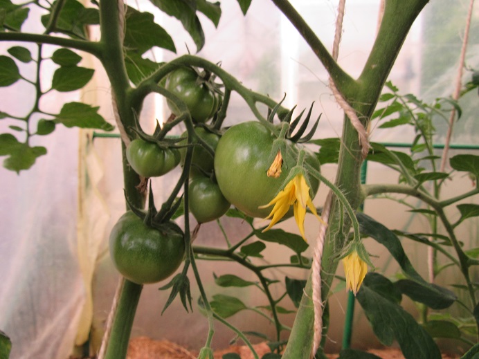 Tes plants de tomates sont magnifiques dans ta serre et commencent déjà à changer de couleur, la classe