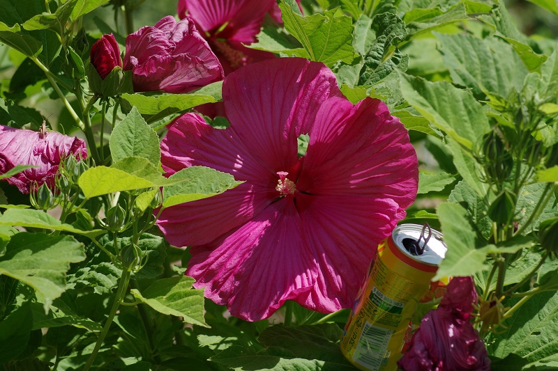 Voici encore Big Hiscus , cette fois j'ai mis une canette à côté pour que vous vous rendiez compte de la dimension des fleurs ...vous avez vu comme je suis sympa avec vous !