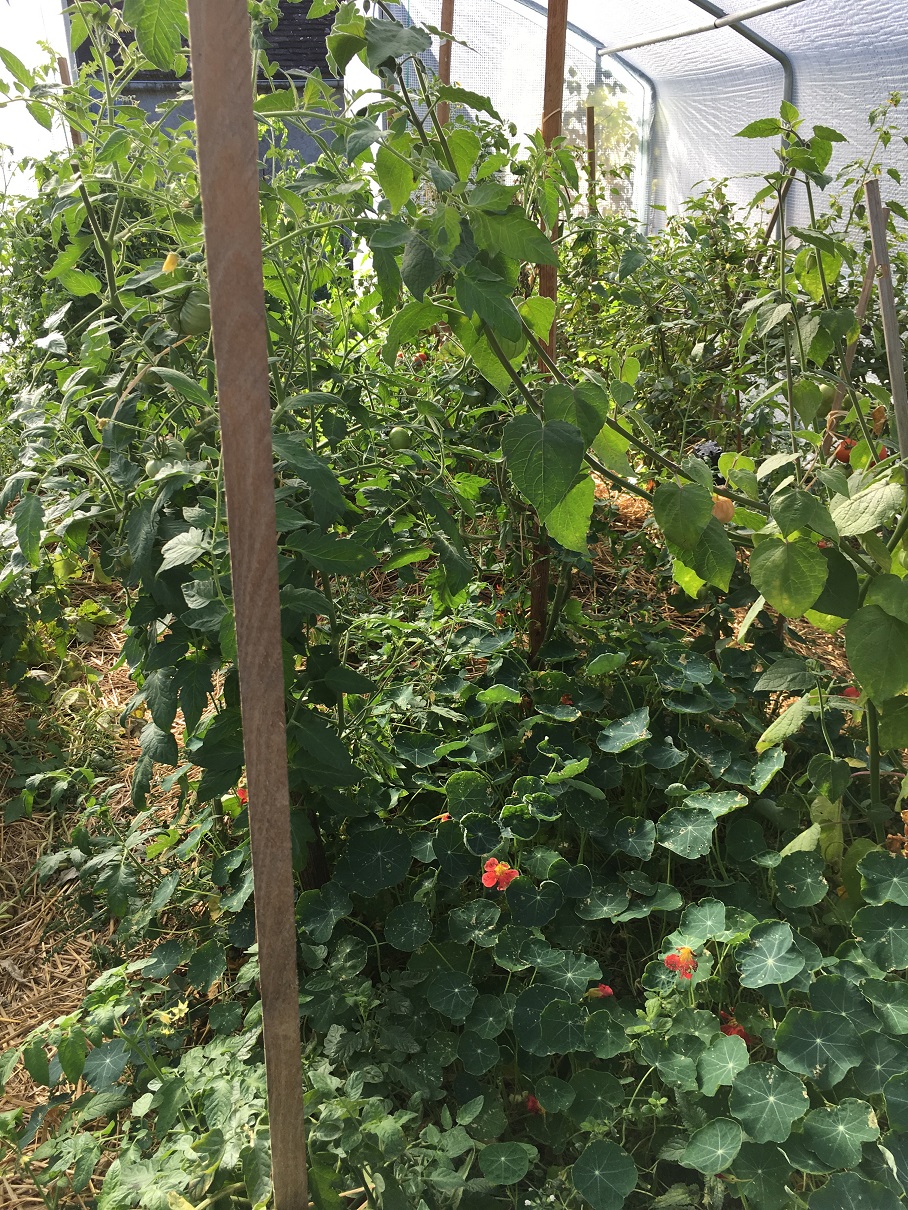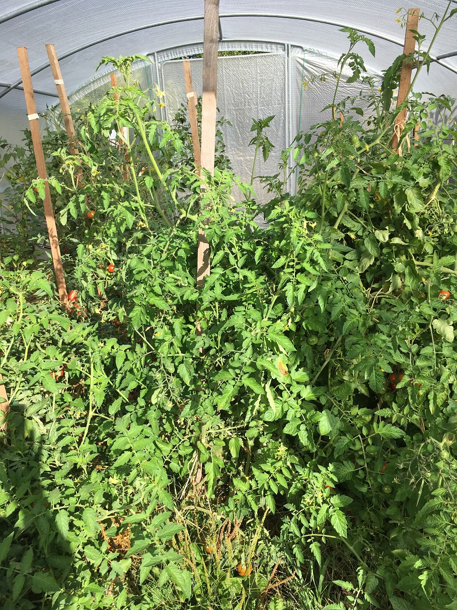 la serre, avec tomates, physallis et tomatillos. accessoirement : des melons
