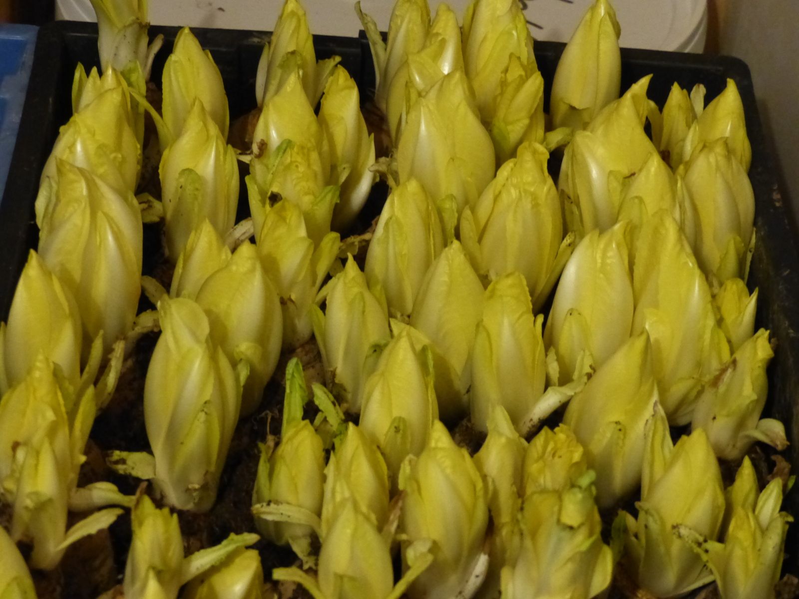 [/img]voici les miennes , la première fournée, nous les consommons depuis une semaine, il y a des chicons de mon jardin et des acheté s , je me demande si je vais encore les cultiver car il faut beaucoup d’eau , j’ai pas loin de chez moi un grossiste qui les vend , le prix est de 14.5 euros pour 75. chicons , mais n’y a pas de dépositaires partout,
