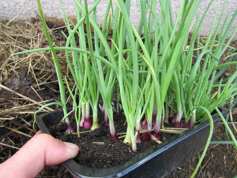 Hier, juste avant une averse, j'ai enfin repiquer les oignons rouges que j'ai semé le 7 février en barquette. Ce sont des graines qui m'ont été offertes cet hiver et je n'avais encore jamais semé d'oignons auparavant.