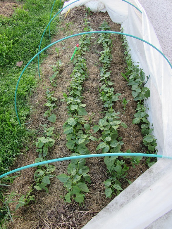 Pour les haricots, ceux ne sont bien sûr pas encore en fleurs mais ils poussent, malgré les attaques de limaces :angryfire:.