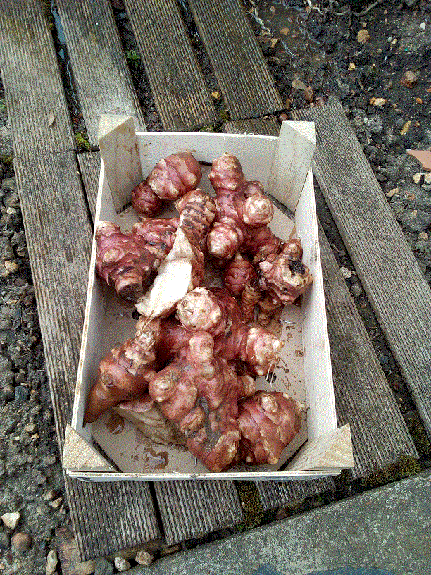 Dernière récolte de topinambours dimanche et pré-nettoyée hier, ils commençaient à raciner.