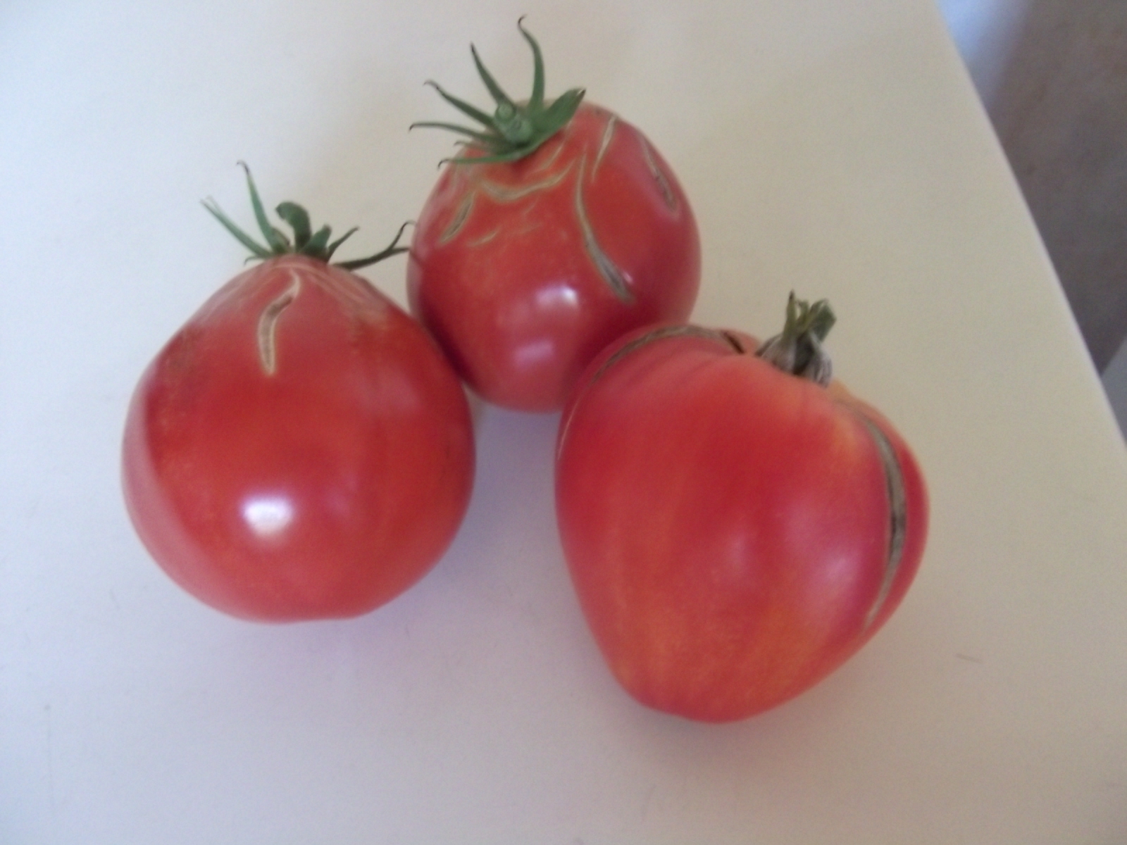 Petite récolte de tomates. Deux Liguria et une Anna Russian. 750 grs en tout.