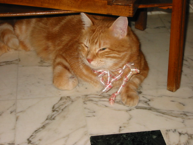 Maintenant, il a 3 ans, sur la photo il avait 1an 1/2 c'était à Noel on l'avait décoré avec les noeuds des emballages cadeaux