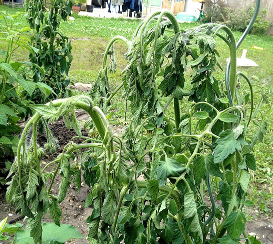 Hier, j'avais de beaux pieds de tomates et 24H après, la moitié de mes pieds avec un copain poivron n'ont plus de power. Ils sont devenus tout mous. J'ai fait des recherches et j'ai trouvé la verticolose. Tous les sites disent que la maladie progresse du bas vers le haut de la plante, mais pour mon cas, ce sont toutes les têtes qui sont devenus toutes molles pour le moment. Je poste une photo pour vous montrer. Pour info, j'habite en Aquitaine, mes pieds font env. 80cm et pour certains étaient couvert de fleurs. Mais il y a tellement eu de pluie que j'ai une flaque sur le terrain et le sol est gorgé d'eau depuis 4 jours. ;-(