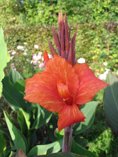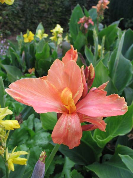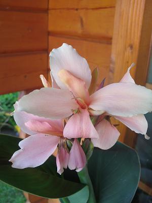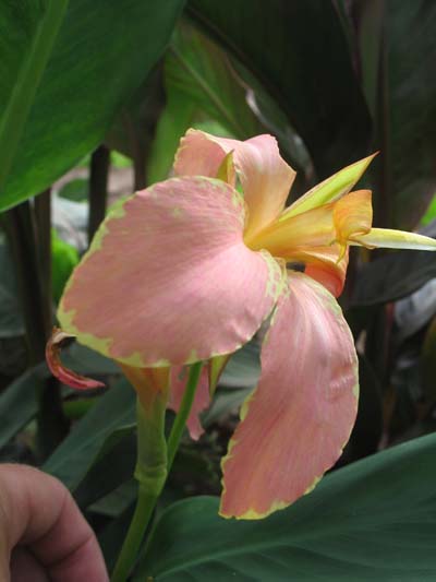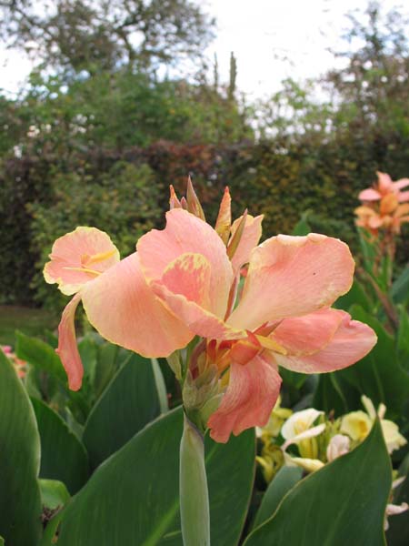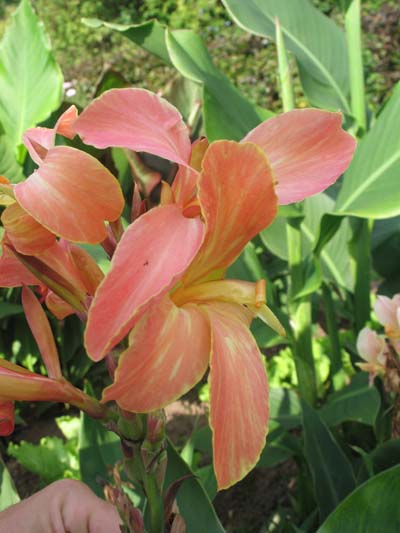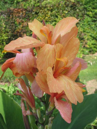 C'est la première fois qu'ils fleurissent chez moi, le feuillage est en effet vert tendre, ils font environ 1,20m mais chez l'ami qui m'a donné les graines, ils font facilement 2m, la fleur est petite, légèrement marbrée de rose et de jaune pour donner un effet orange moiré.