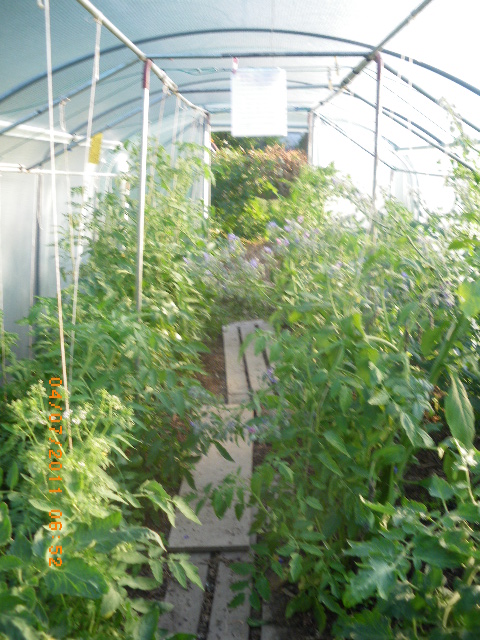 La bâche a été refixée, les tomates ont été replantées, environ 100 plants.