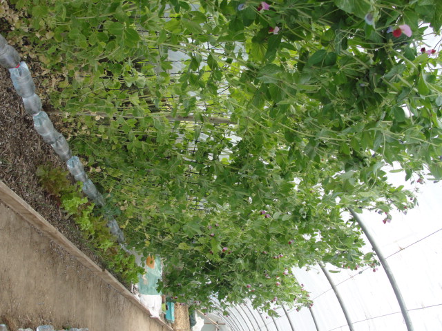 Bien sûr le tunnel n'est chauffé que par le soleil, mais sa surface (90 m2) et son volume (175 m3) créent une masse thermique intéressante.