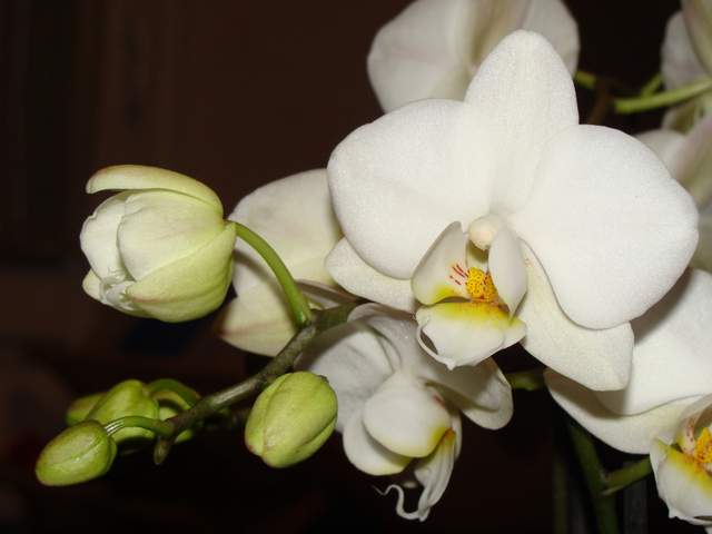 Un que je suis bien contente d'avoir récupéré... il avait fort peu de racines, après son achat avec hampes et sa dernière floraison à l'hiver 2010, il sortait du pot tout seul, pratiquement, tellement il n'avait rien pour le maintenir au substrat