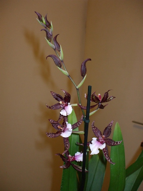 Floraison un peu plus avancée du Wilsonara Kolibri, du moins sur 2 hampes, la 3ème n'est pas encore éclose (Wilsonara Kolibri)