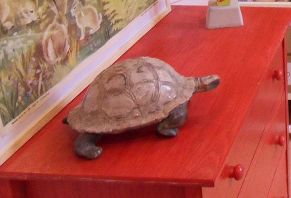 j'ai une tortue aussi qui attend s les beaux jours pour aller profiter de la cour, je l'ai réalisé en raku il y a pas mal d'année