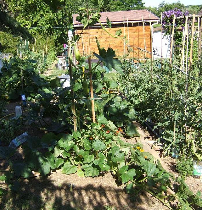 Quelques nouvelles du jardin. Pour le moment les tomates poussent tranquillement, les poivrons et aubergines poussent avec lenteur, les courgettes qui étaient moribondes ont repris du poil de la bête, je vous en parlerais plus loin.