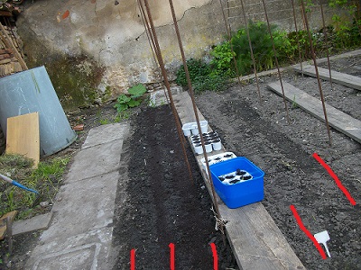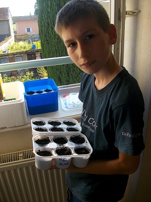. reste un point faible: l'impatience ( maladie du petit nouveau). si je l'écoutais, ce serai tous les jours. De plus , ce sera mercredi prochain le 15 mai, que nous repiquerons la totalité des plants.