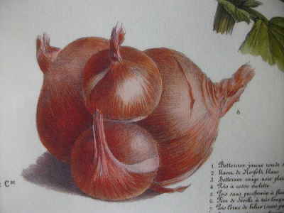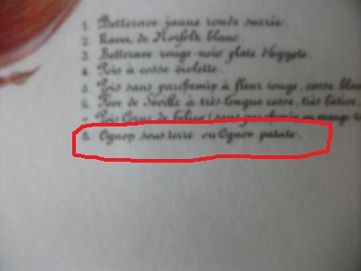 car ayant fait l'acquisition d'une planche Vilmorin 1871, l'on y trouve l'oignon patate et aussi les pois violets !!