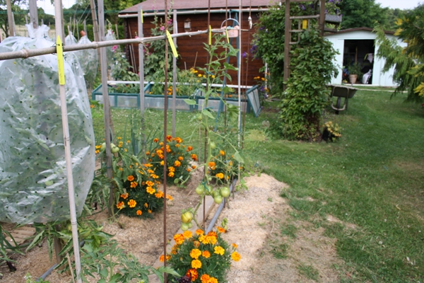 Et les tomates vont bien pour le moment. J'ai aussi semer encore des graines de concombres pour la fin de saison.