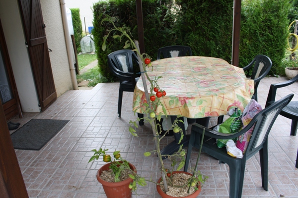 Il fait trop chaud pour travailler dehors. 33° sur le thermomètre du coté nord. Donc c'est repos jusqu'à 19 h. Les plantes qui eux non plus n'y sont pas habituée et elles souffrent, en particulier les tomates en pot.