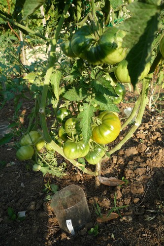 tous les jours, on travaille un peu au potager, on doit raccrocher les tomates, elles prennent leurs aises et du coup, on peut plus passer entre les rangs !