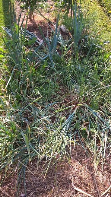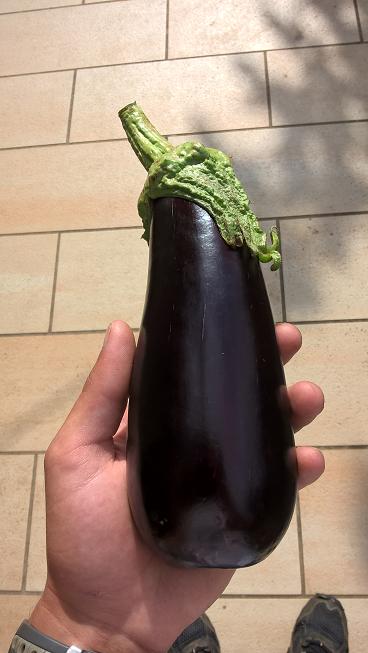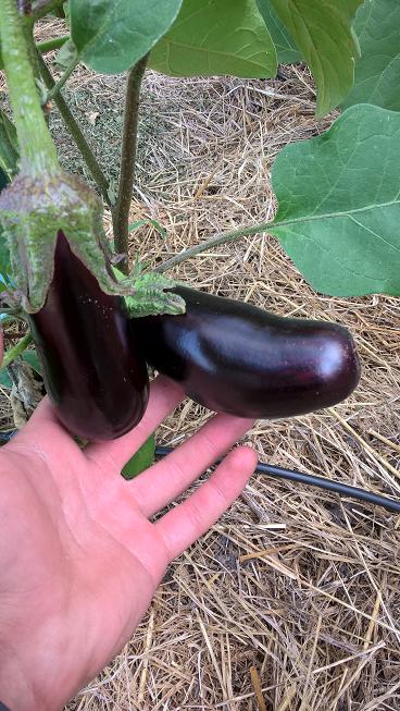 On récoltes actuellement les premières aubergines,quelques poignées des malheureux haricots,salades,fenouil,courgettes,tomates,oignons blancs et bientôt (avec de l'avance cette année) pomme de terre,oignons jaunes,échalotes