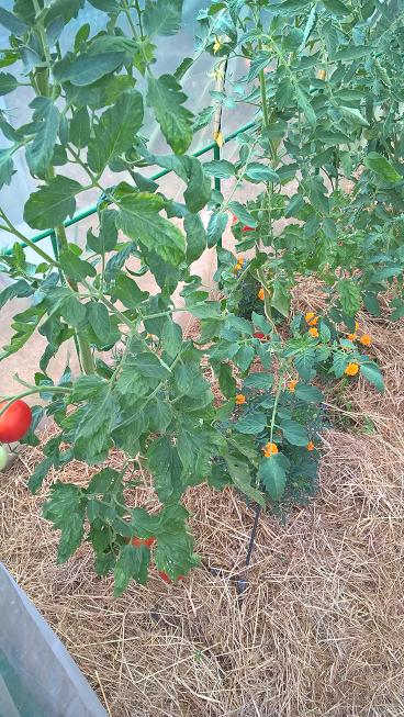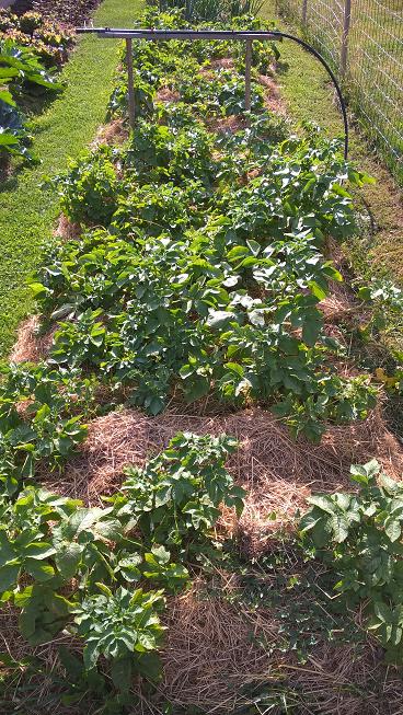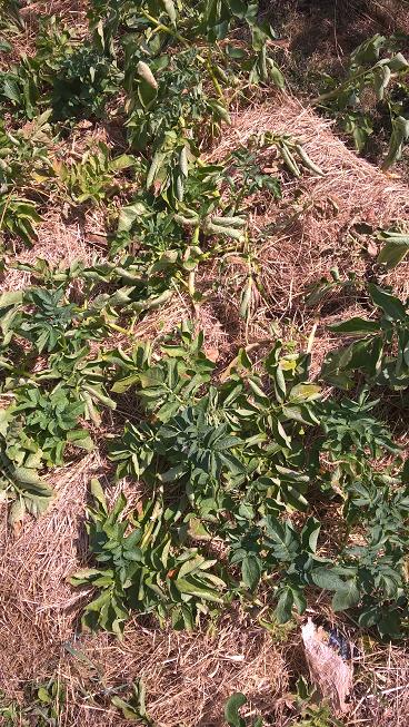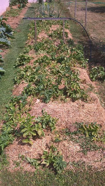 Actuellement le potager résiste bien grâce aux arrosage,sauf les pommes de terre qui ont complètement séchée et seront bonnes à récolter dans une semaine,s'est à dire avec plus d'un mois d'avance