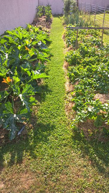 Ca pousse bien quand même chez toi, le paillage est efficace et à ce sujet je vois que ton foin a l'air d'être coupé en morceaux assez petits, comment fais-tu ?