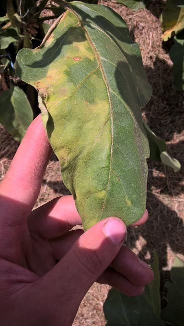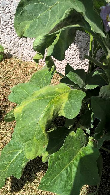 Ici les tomates ont eu le mildiou terrestre (d'après pascal clerc) que je pense avoir stoppé avec une pulvé de bicarbonate en attendant que son purin soit prêt, la chaleur aussi l'arrête. les feuilles s'enroulent pour se protéger. quant aux aubergines la 1ère fait 3cm malgré des arrosages importants.
