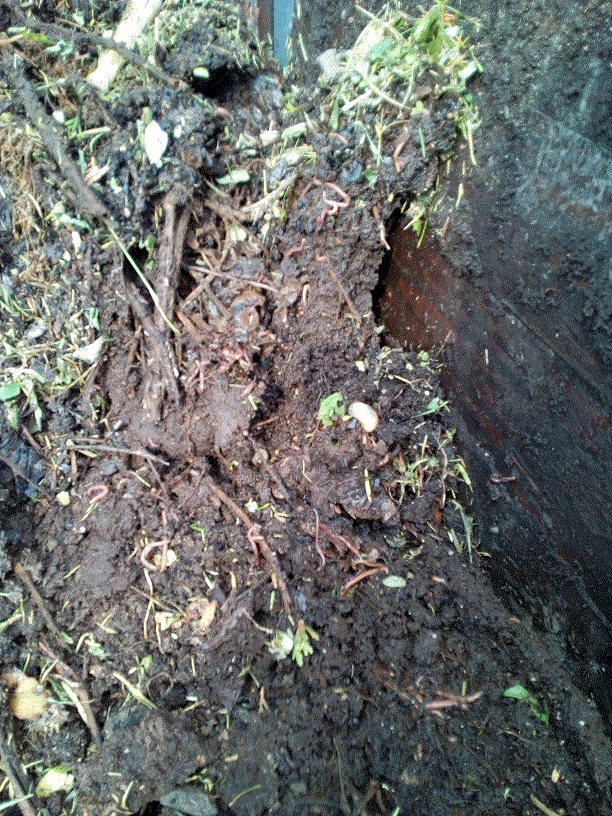Hier j'ai retourné mon compost et j'ai la bonne surprise de constater qu'il grouillait de ver, de larves de cétoine et autres petits insectes, désolé pour la photo un peu trouble.