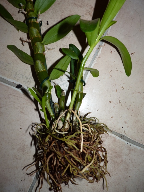 Les racines du brassia étant relativement sèches, je n'ai pas ré-arrosé depuis le rempotage, j'ai peur de le faire pourrir.