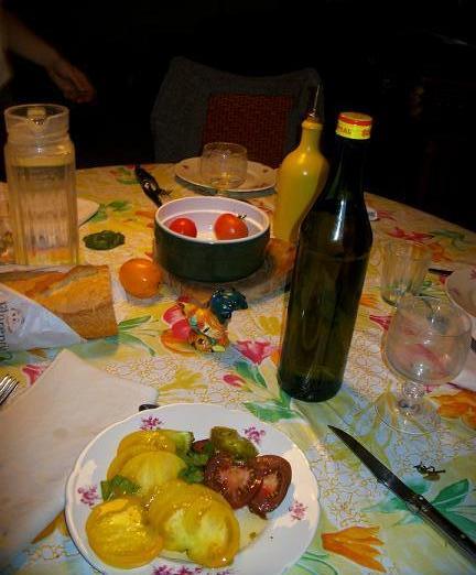 hier soir petite assiette de tomates, le tout avec un filet d'huile de noix. hé ,oui , il n'y a pas que l'huile d'olive dans la vie d'un gourmet!