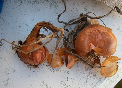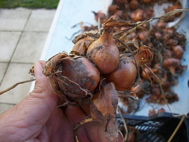 les oignons sont gros! en fait je n'ai absolument rien touché au potager. Pas arrosé, pas désherbé, rien.Hors j'ai récolté d'énorme oignons.