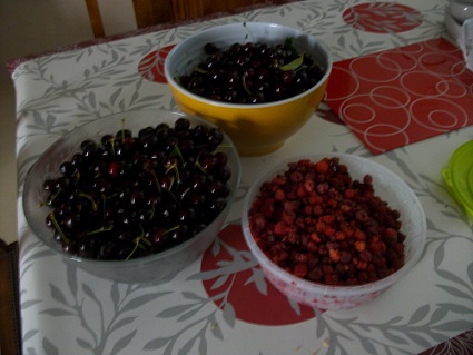 les cerisier et les framboisiers croulent sous les fruits! nous sommes gâtés ! :fete: