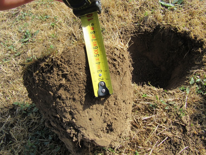 J'ai retiré une motte de gazon pour constater la pénétration en profondeurs des dernières pluies. Ce n'est pas très visible sur la photo mais seulement quelques centimètres sont humides, le dessous est bien poussiéreux encore.