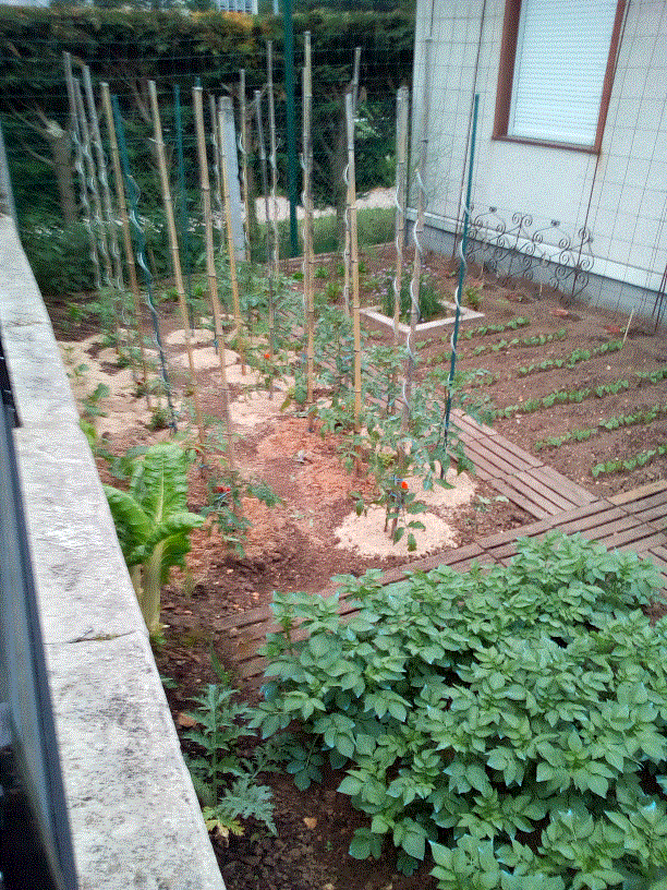. A croire qu'ils se portent mieux quand je ne suis pas là... Les tomates ont pris entre 30 et 40 cm... Les rattes sont en fleurs, les haricots sont magnifiques.