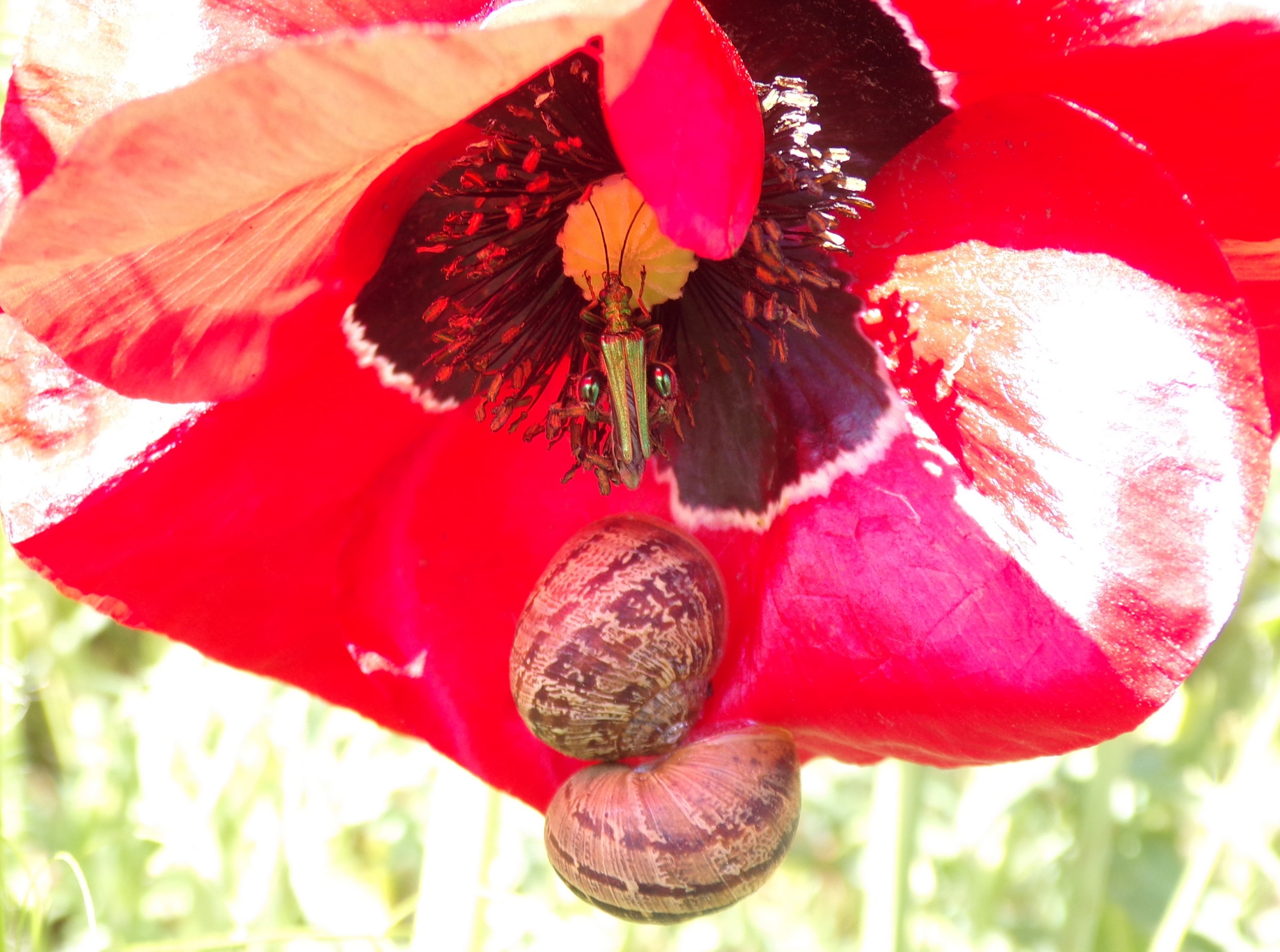 Pauvre coquelicot qui doit en plus supporter les 2 escargots :
