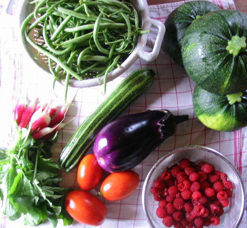 il me reste à cueillir des fraises, des blettes, encore des aubergines et des tomates, des radis, et peut-être des carottes.