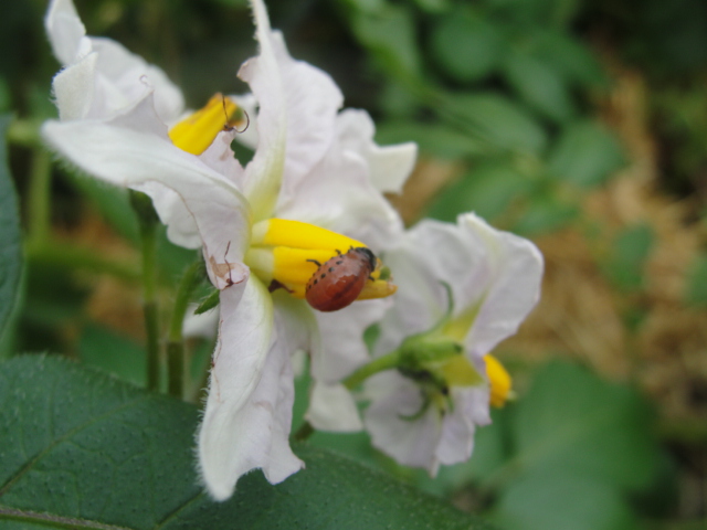 Et voilà que hier je trouve une larve sur une fleur de pdt. Surprise ! Stupeur ! Stupéfaction !