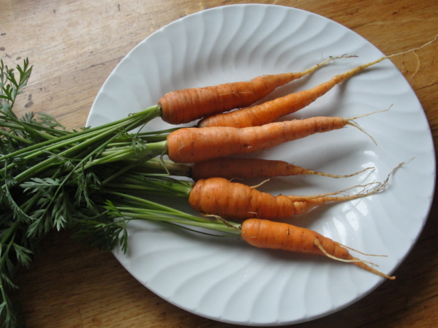 Quelques carottes semées le 7 février. On va les donner à croquer demain à nos petits enfants.