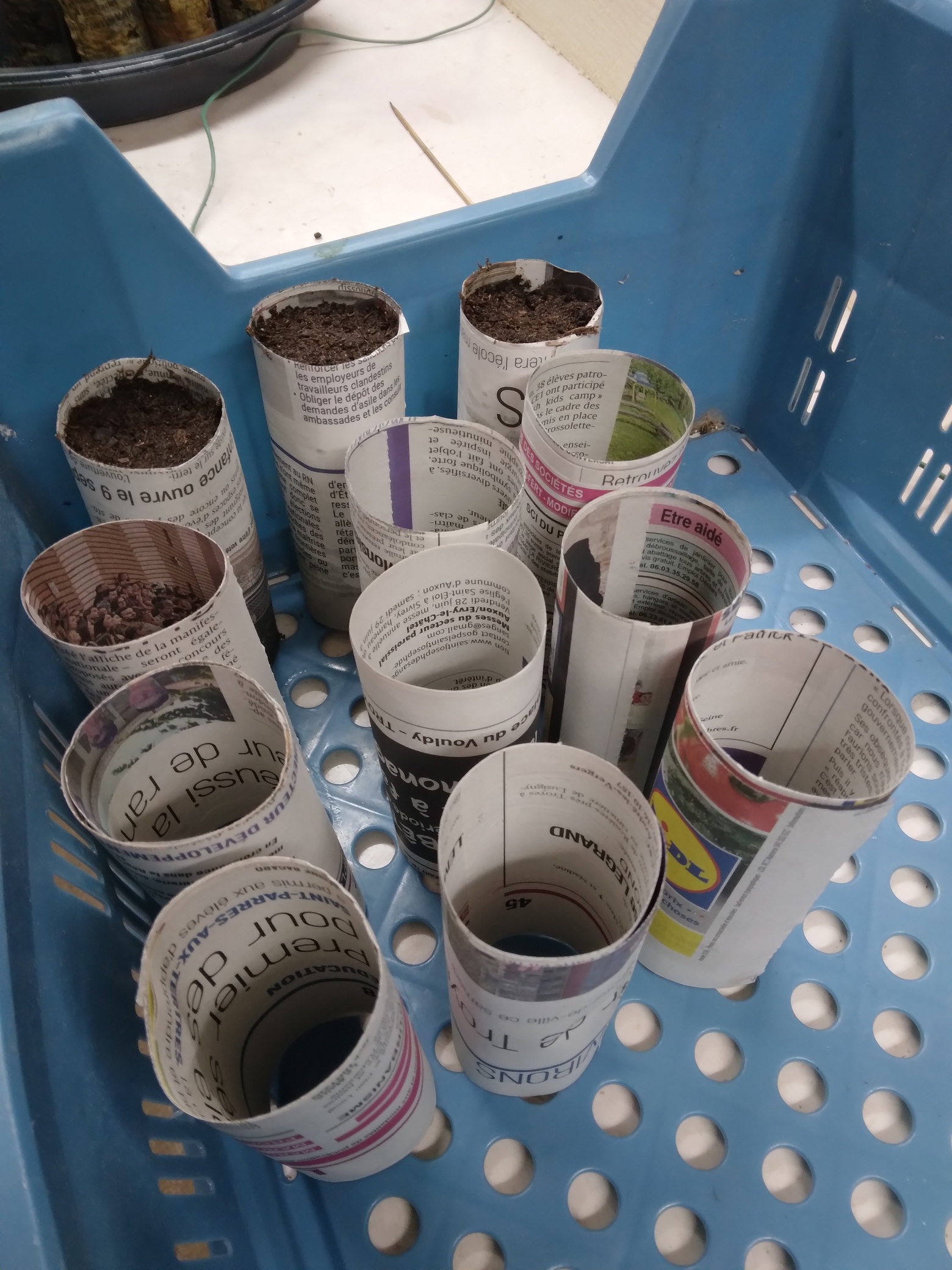 Je suis content d'apprendre que tu fais un test de semis en pots enveloppés de papier. J'ai toujours lu/entendu qu'il était impossible de repiquer des plants de carottes. Mais toi tu les sèmes dans une "véritable tour" étroite (4 cm) et haute (20 cm) et tu ne feras pas un repiquage, mais une transplantation ... Ce n'est donc pas un enième épisode de Mission impossible
