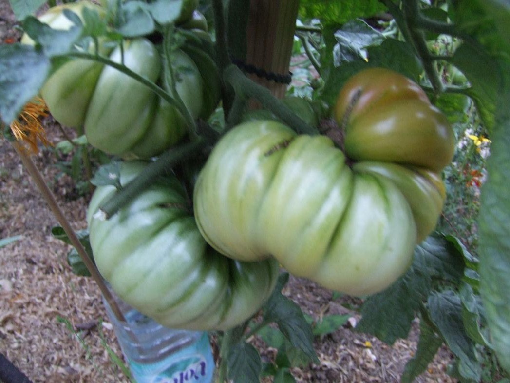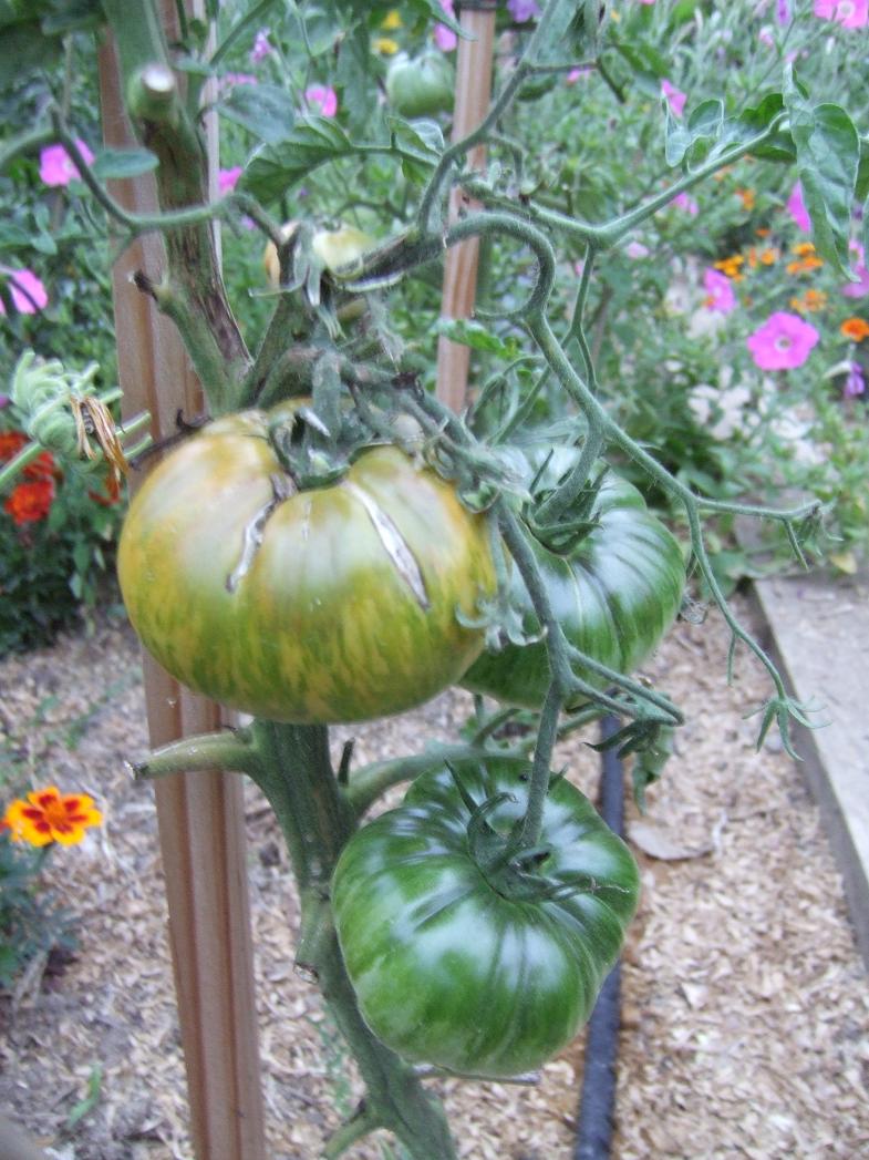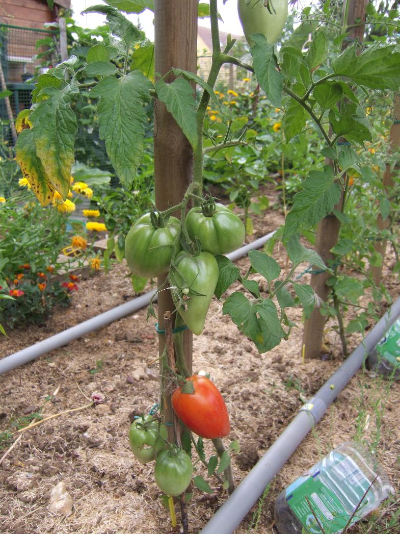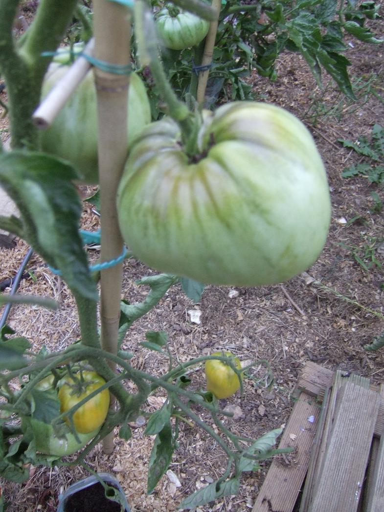 Les tomates sont super mais pour combien de temps ? J'ai enlevé un bon nombre de feuilles et un pied qui avait complètement sèché. Pour le moment j'ai pu goûter avec plaisir :stupice (la première), tigerella, green zébra
