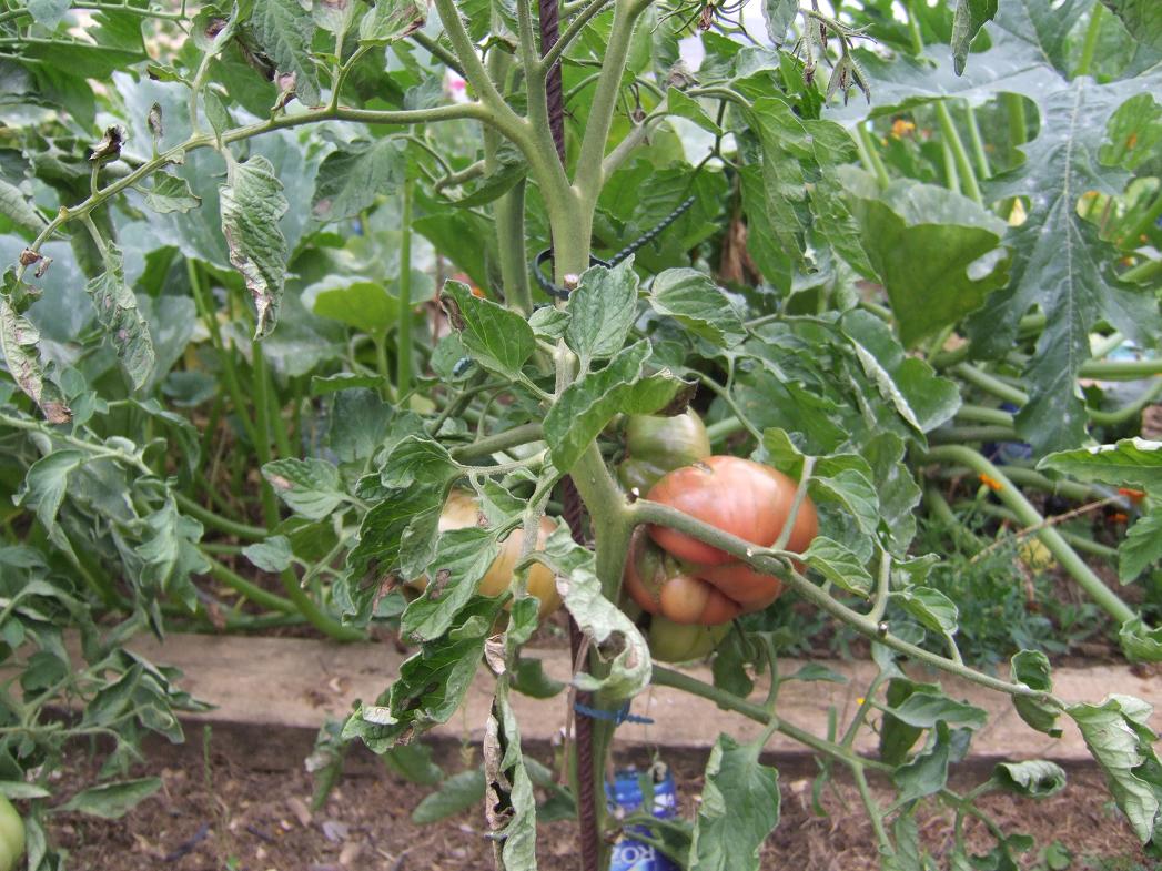 Voici quelques photos. Pour le moment il ne pleut pas et j'espère que cela va durer car j'ai bien peur que les champignons en profitent pour finir de contaminer les pieds de tomates.